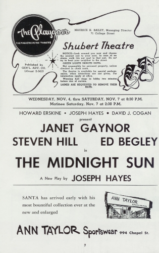 Midnight Sun - November 4-7, 1959 • pre-Broadway tryout • character played: Jeff Adkins • Shubert Theatre, New Haven, Conn. •