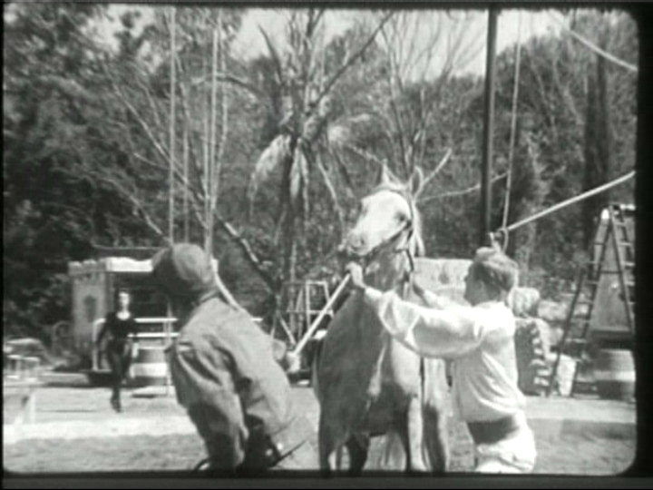 fancy stunts are done by stuntman. Eric (RD) has to settle down a spooked Shatze. |